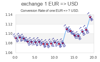 The conversion rates are supplied by ECB (European Central Bank) renewed daily, they are only for reference during one day. Please see also the history of evolution, conversion rate of this currency, or the variation chart of EUR => USD. The cross table of world foreign currencies gives a global view, and the list of the World Currencies is also to be consulted.
